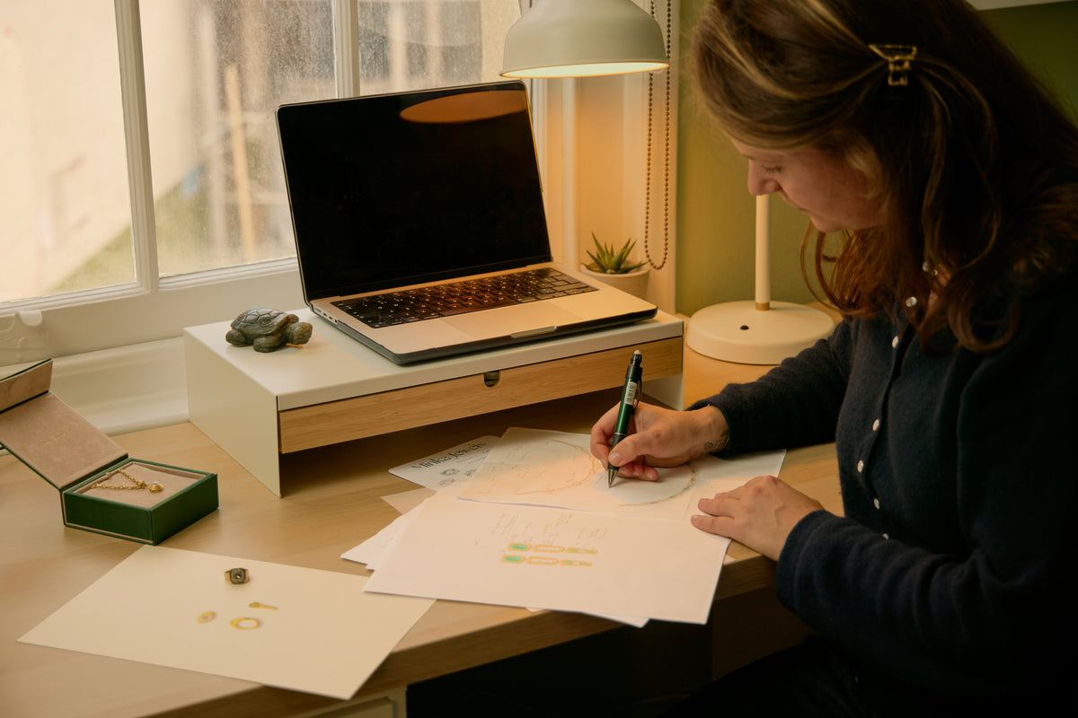 Following our initial consultation, we would meet for thirty minutes to an hour to show you a selection of gemstones that meet your criteria. As a trained gemologist, Lucy only sources the very best gemstones - personally choosing them for their rarity and beauty, thoroughly inspecting each one to ensure a properly balanced cut. We’ll spend some time playing around with the stones, trying them against your skin tone, chatting about settings and sketching out a little design as we go.